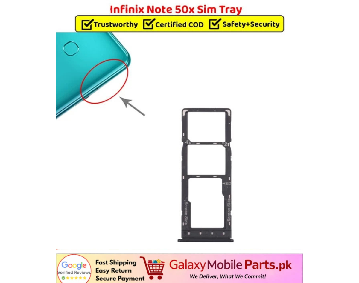Infinix Note 50x Sim Tray Original from Galaxy Mobile Parts Store represents quality reliability and professional service making it the ideal choice for customers and repair businesses seeking trusted smartphone spare parts that ensure secure sim placement stable connectivity and long lasting durability in Pakistan