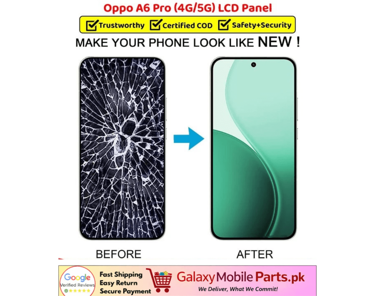 Oppo A6 Pro LCD Panel display is cracked, damaged, showing black spots, or touch is not working properly, then replacing the LCD panel is the best solution. A damaged screen not only affects the look of your smartphone but also reduces its performance and usability. At GallaxyMobileParts.Store, we provide high-quality Oppo A6 Pro LCD Panel designed to restore your phone’s original display clarity and smooth touch performance.