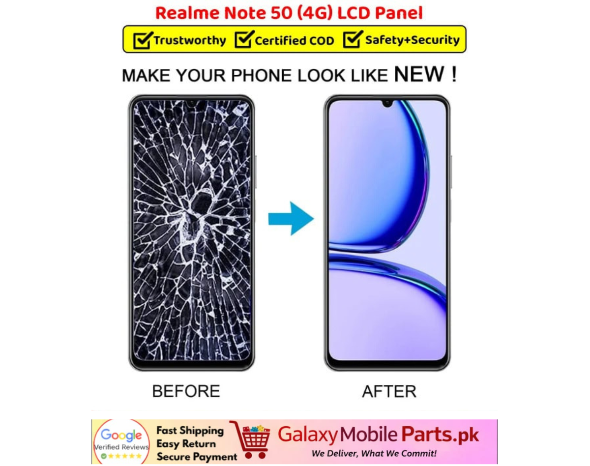 The Realme Note 50 4G LCD Panel from Galaxy Mobile Parts Store combines clear visuals responsive touch and durable design offering a complete display replacement solution that ensures your device performs reliably and maintains its high quality experience