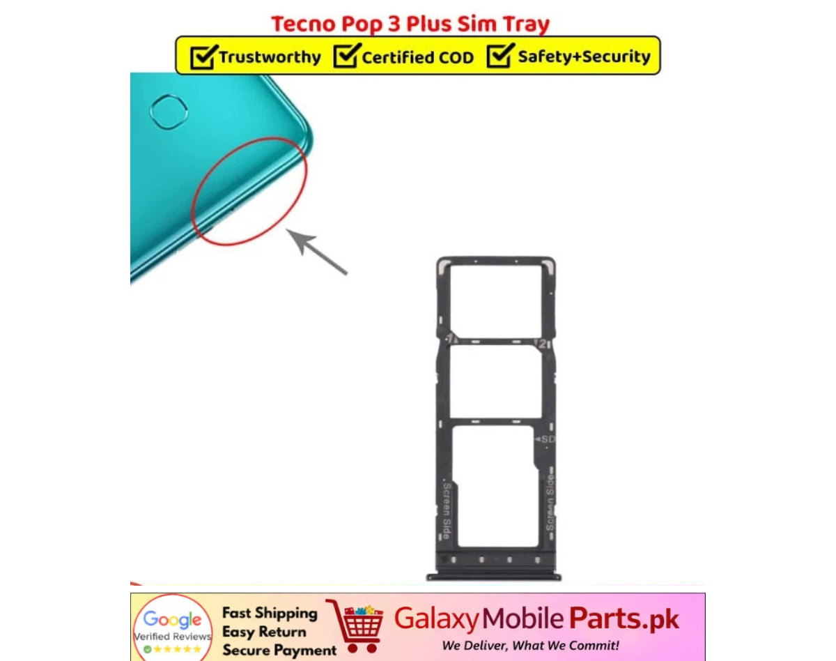 Tecno Pop 3 Plus Sim Tray Premium from Galaxy Mobile Parts Store represents quality reliability and professional service making it the ideal choice for customers and repair businesses seeking trusted smartphone spare parts that ensure secure sim placement stable connectivity and long lasting durability in Pakistan